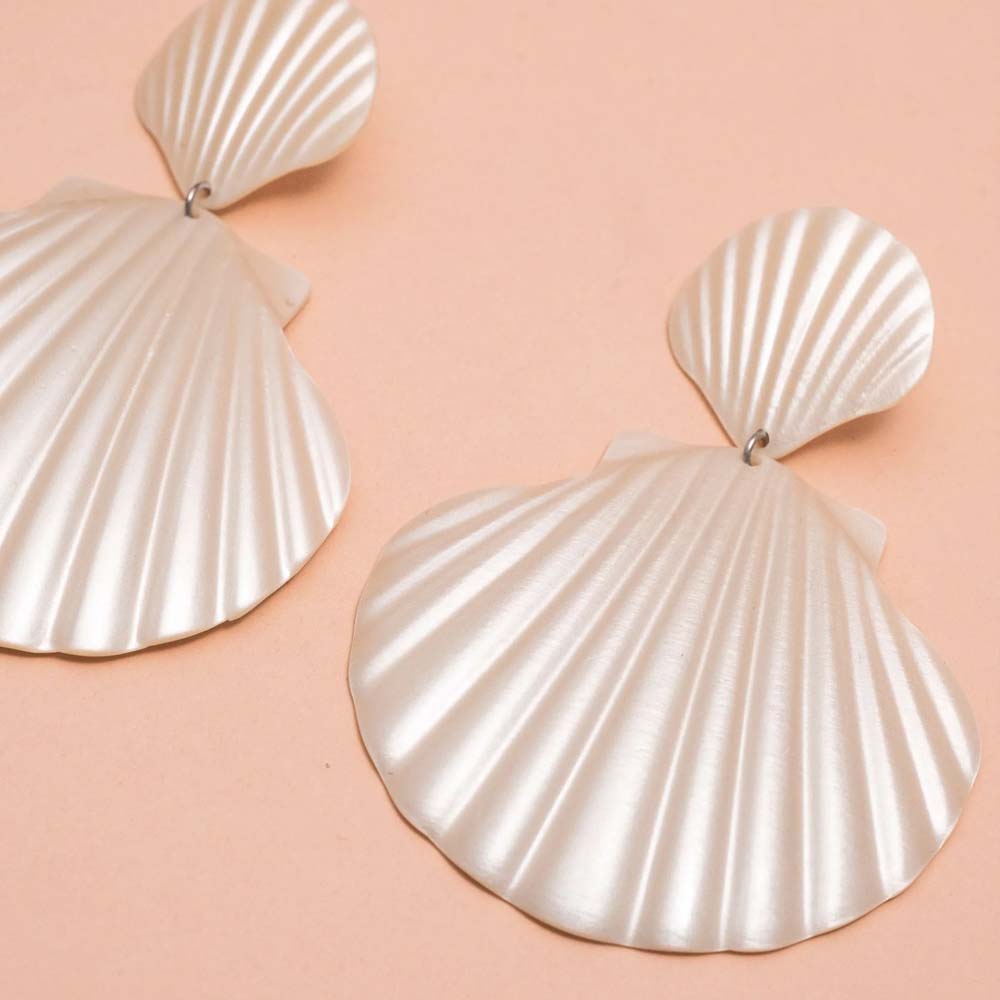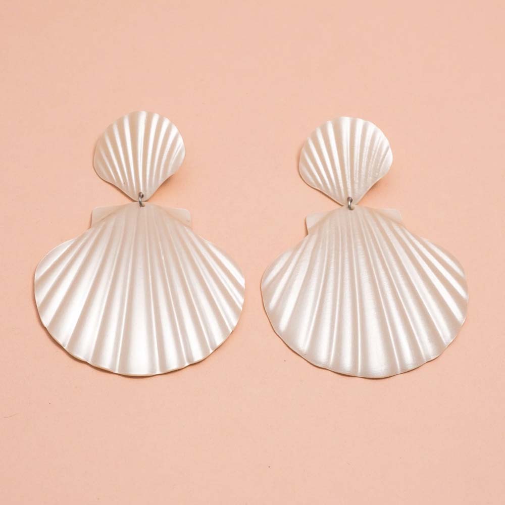 Peça: Brinco banhado a bianco em formato de concha, destacando-se pelo seu brilho elegante e sofisticado. No centro, uma concha de resina também revestida em banho de bianco adiciona um toque de charme orgânico.