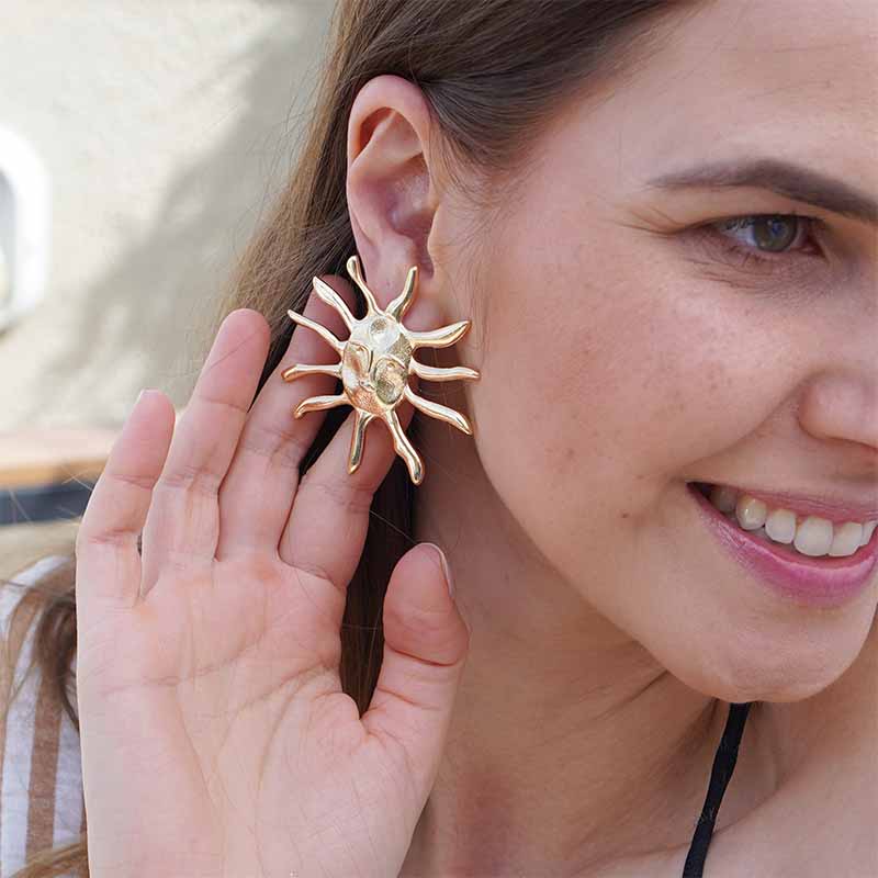 Com design artístico e elegante, o Brinco Sol de Verão traz o formato de um sol estilizado que transmite energia, luz e sofisticação. Seu acabamento em dourado dá um toque moderno e radiante, perfeito para quem ama acessórios que se destacam e elevam qualquer produção. Ideal para compor looks solares e cheios de personalidade.
