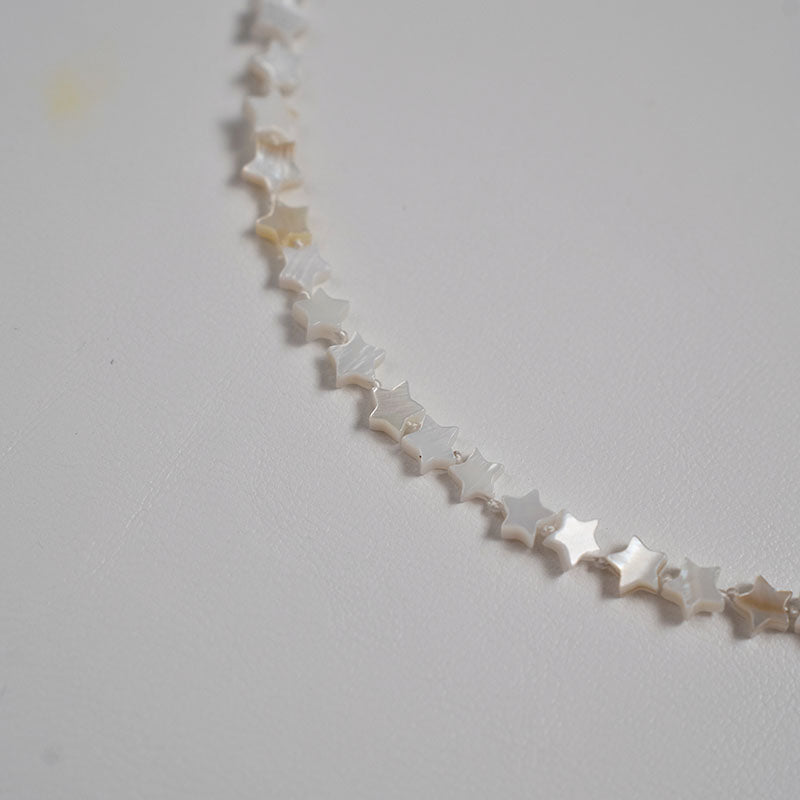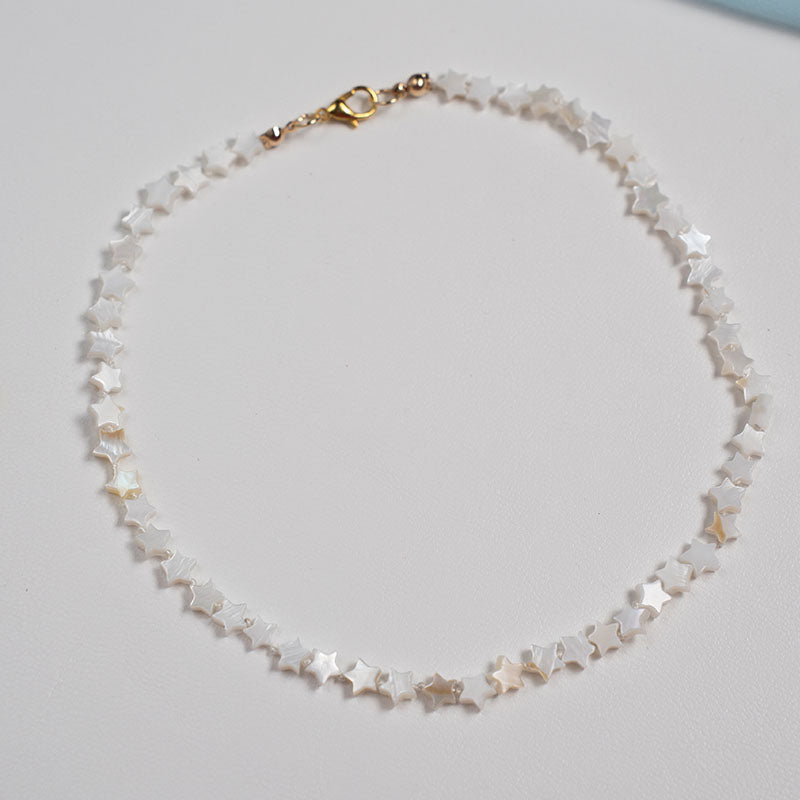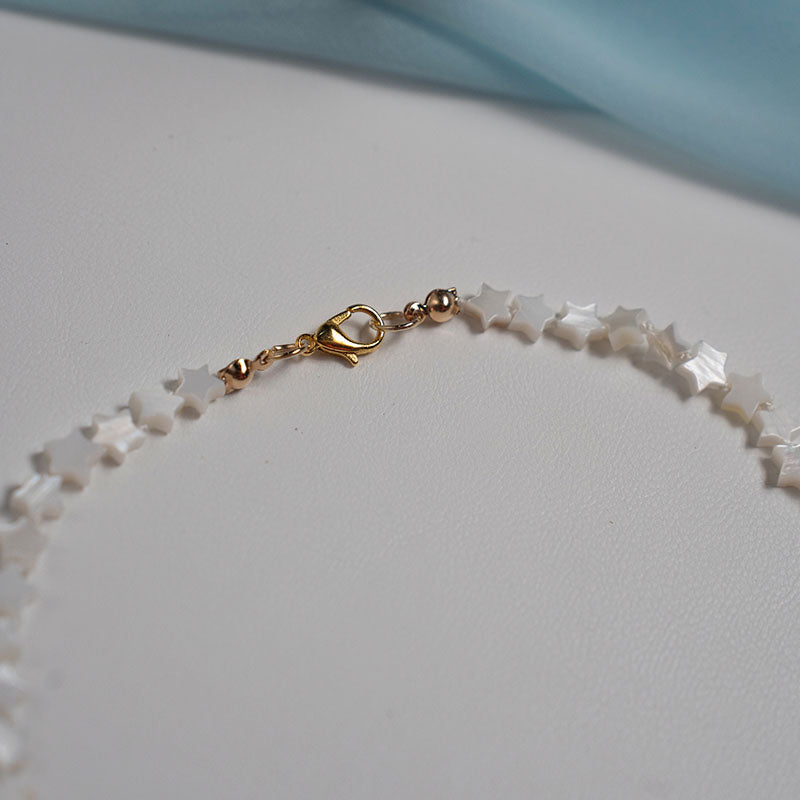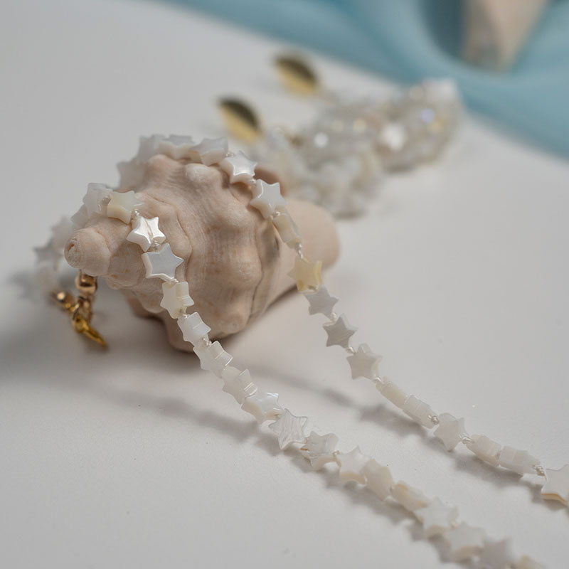 Leve e encantador, o Colar Areia Estelar é composto por delicadas madrepérolas naturais em formato de estrela, que refletem a luz com um brilho suave e elegante. Inspirado na serenidade da praia ao entardecer, é uma peça que combina delicadeza e sofisticação, perfeita para quem ama acessórios com toque natural e brilho sutil.