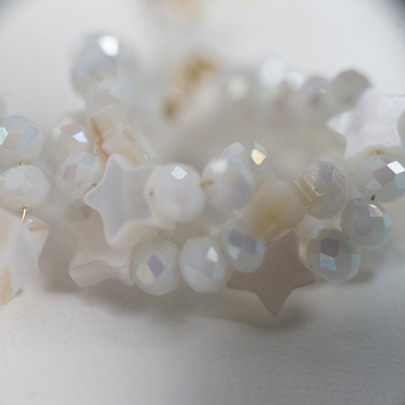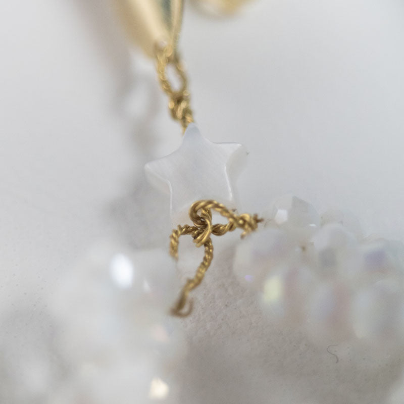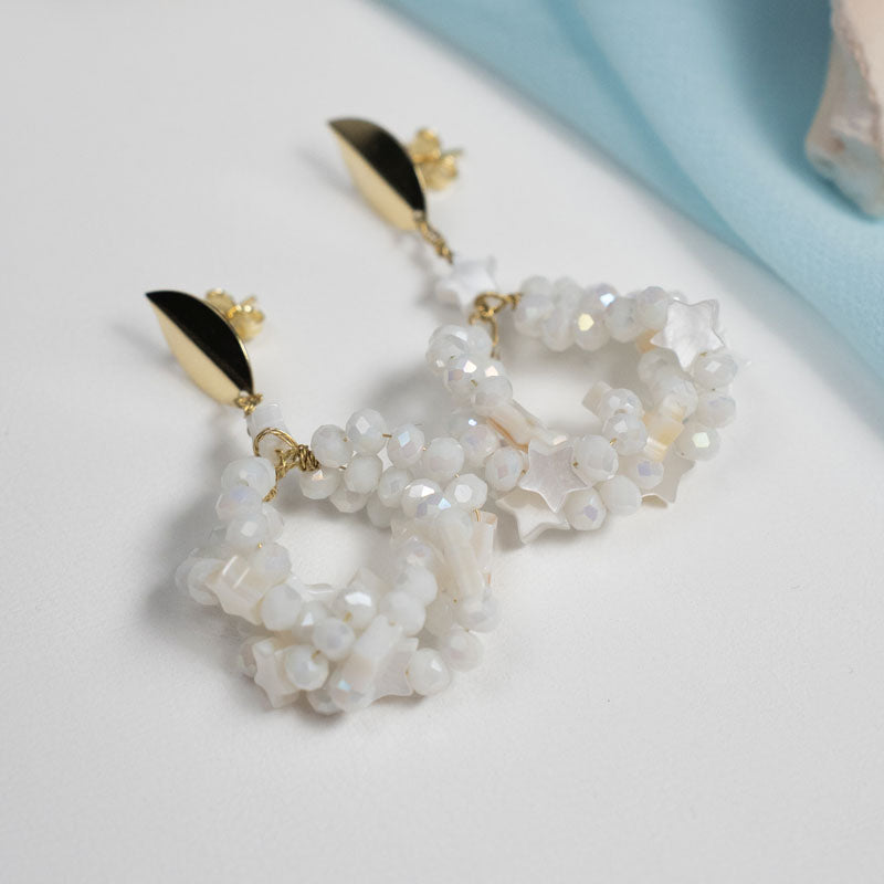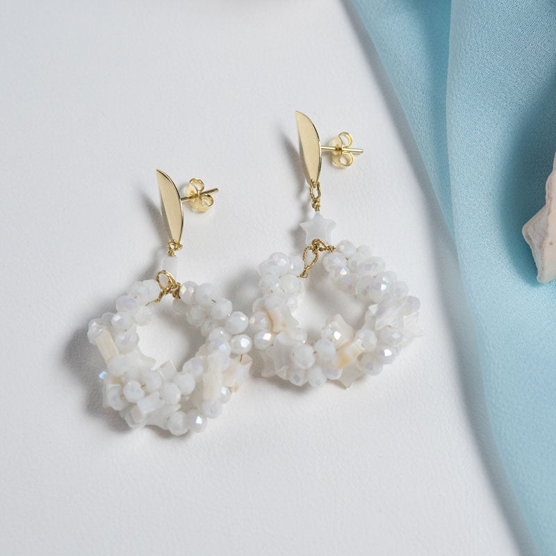 Inspirado na beleza suave das praias tropicais, o Brinco Areia Branca traz o brilho delicado dos cristais de vidro branco combinados às estrelas em madrepérola. As ponteiras banhadas a ouro complementam o design com um toque sofisticado e atemporal. Um acessório leve, elegante e perfeito para quem ama o frescor do verão e o encanto do mar. 🌤️🌊