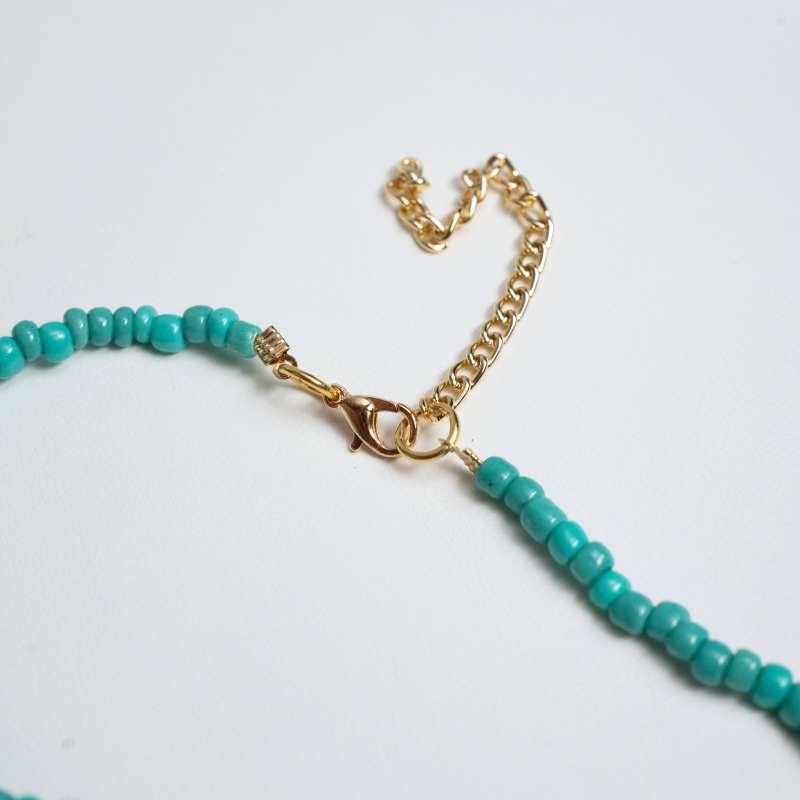 • Material: Miçangas e pedras em tom turquesa